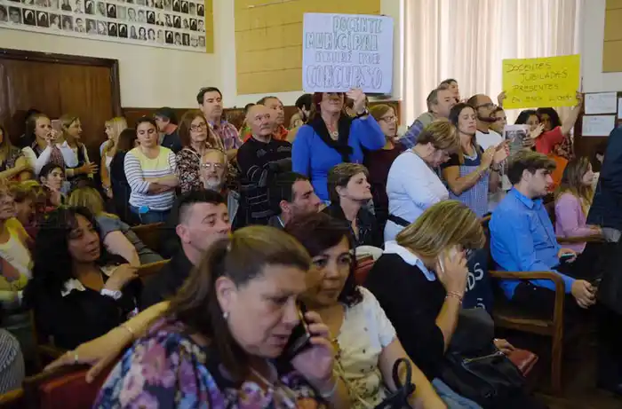 Al recinto, no sólo se hicieron presentes Mourelle y Distéfano y los concejales, sino también otros integrantes del gabinete de Carlos Arroyo y un numeroso grupo del Sindicato de Trabajadores Municipales (STM), junto a otros sectores.
