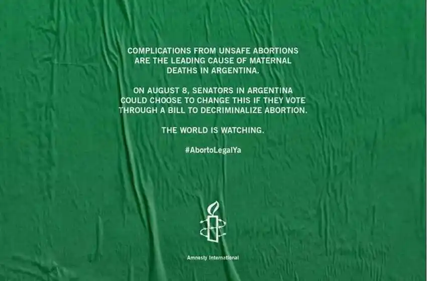 "Los millones de mujeres y niñas que tan apasionadamente han luchado por sus derechos deben saber que la gente de todo el mundo se solidariza con ellas. Es hora de que los senadores demuestren que también apoyan a las mujeres", agregó Mariela Belski, directora ejecutiva de Amnistía Internacional Argentina.
