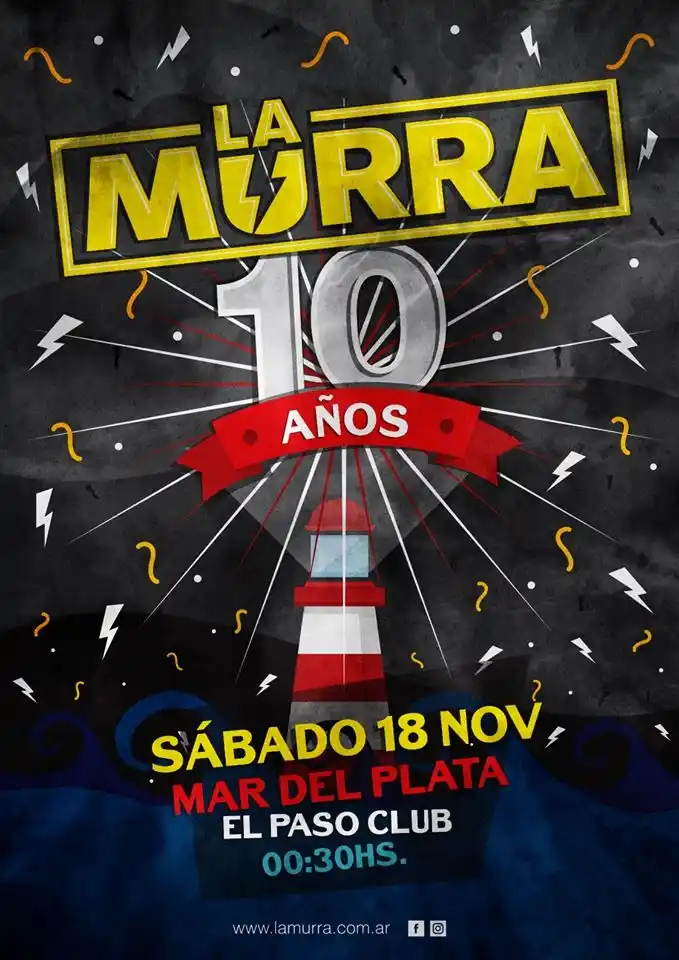 La banda local La Murra cumple 10 Años y festeja en El Paso Club con entrada gratis, a partir de las 00. Se presentarán nuevos temas y algunos del recuerdo junto a artistas invitados de la banda marplatense.