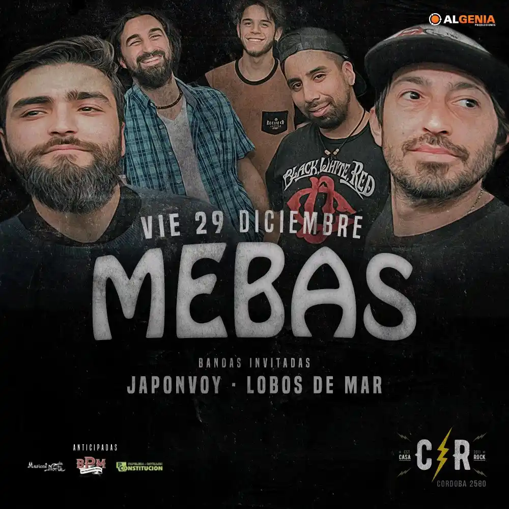 La banda integrada por Emanuel Morea, Gabriel Rodriguez, Facundo Coronel, Diego Heugas y Mauricio Sposito despide año en el bar ubicado en Córdoba 2580 desde las 21. En esta oportunidad Mebas estará acompañada por las bandas Lobo de Mar de Japonvoy.