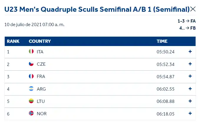 A pesar de ello, para el bote nacional no fue suficiente porque culminó en el cuarto puesto, cuando los que clasificaban para la Final “A” (los mejores 6 del torneo) eran los primeros tres. Los equipos de Italia, República Checa y Francia fueron los clasificados, todos por debajo de los 6 minutos.