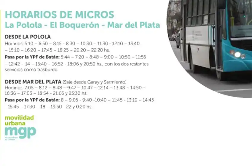 Anunciaron los horarios de micros hacia El Boquerón y La Polola