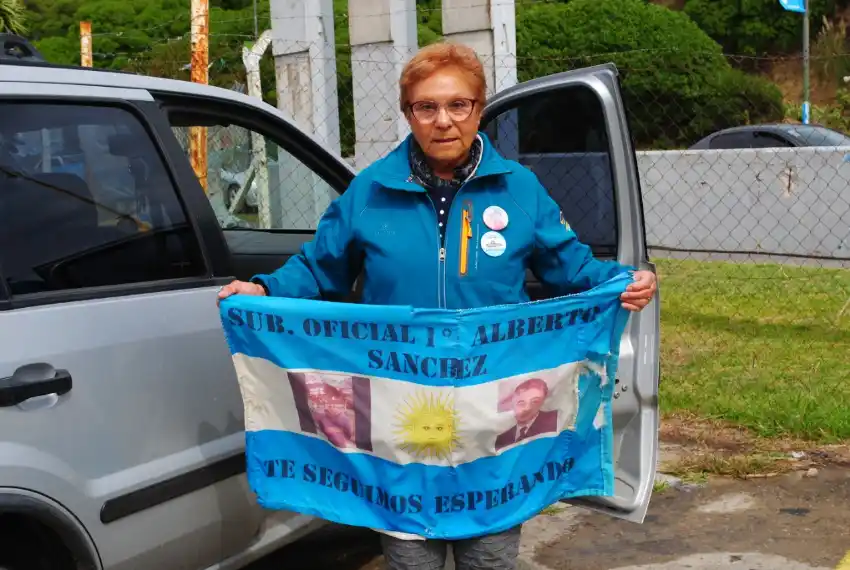 La angustia de la lluvia y del gris que se atrevió a confundir el cielo con el mar de la ciudad no significó tampoco barrera alguna para que tanto la hermana como la madre de “Alber” estén otro día más en la Base Naval, reparando sus banderas, para que se mantengan ahí, sobre el alambrado, tan firmes y fuertes como lo están desde el primer día.