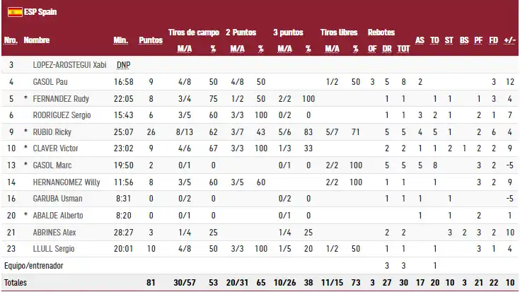 España había crecido en su manera de jugar y todos los intentos que hizo el equipo argentino no contaron con la suficiente efectividad. Eso les permitió sacar una máxima de 16 puntos hasta que se cerró el juego en 10 unidades.