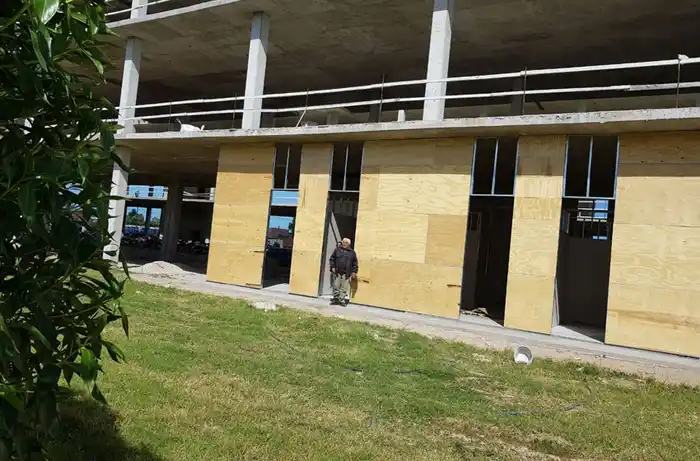 Por esta fecha, el Municipio ya procedió con la colocación de los primeros paneles en parte de la fechada, y también con el trazado de las paredes que dividen los sectores internos de las instalaciones que utilizará la fuerza.