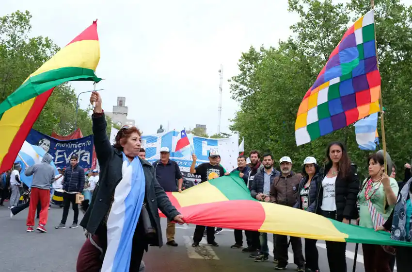 “Bolivia: contra la reacción, revolución”; “Hoy por ti, mañana por mi…es un acto de solemne honor” rezaban algunas banderas y carteles sostenidos por integrantes de la comunidad boliviana en Argentina, que también se hicieron presentes en la movilización, con sombreros típicos y banderas de su país.
