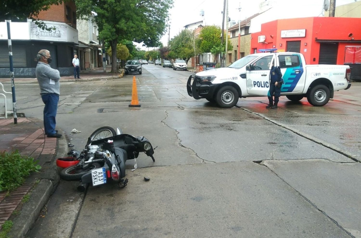 Personal policial de la Comisaría 2da fue alertado en la mañana de hoy a la intersección de las calles Dorrego y Alvarado por un accidente de tránsito. Al llegar al lugar, los efectivos encontraron sobre la cinta asfáltica a una pareja junto a un motovehículo de 110 cm3, quienes expresaron haber sido embestidos por un auto que se había dado a la fuga.