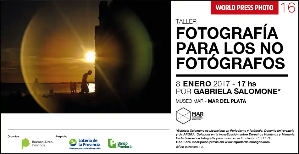 En el marco de la muestra "El poder de la imagen" que se exhibe en el Museo MAR, este domingo 8 de enero, a partir de las 17, se desarrollará un taller fotográfico para "no fotógrafos", dictado por Gabriela Salomone y orientado al público en general. Los interesados deberán inscribirse vía web.