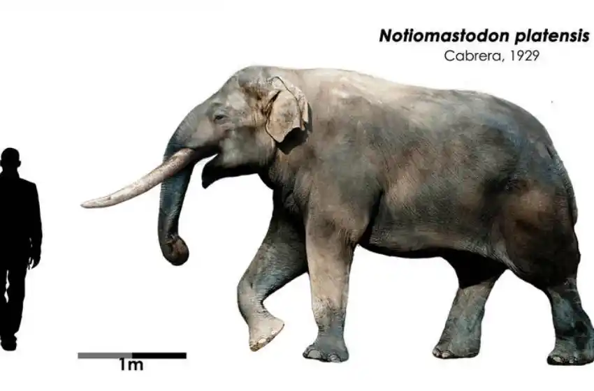 Se trata del Mastodonte sudamericano (Notiomastodon platensis), un tipo de elefante prehistórico que habitó Sudamérica durante el último millón de años y que se extinguió hace sólo 10 mil años atrás junto con otros grandes mamíferos que habitaron la zona.