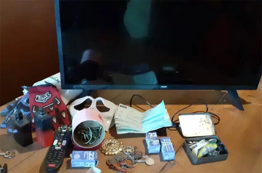 Asimismo, se secuestraron 120 municiones calibre 22 marca Orbea y la suma de 5220 pesos. Mientras que en la habitación del otro domicilio allanado, se procedió al secuestro de un televisor marca Philips 32 " sustraído en el hecho y varios efectos personales