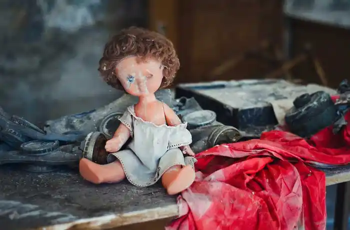 Los restos de juguetes en un jardín de infantes situado en la Zona de Exclusión.