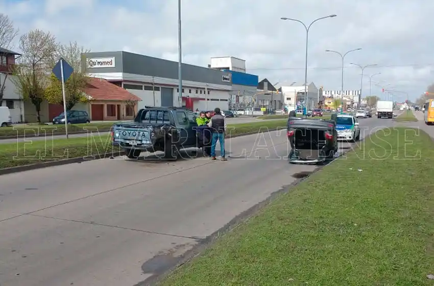 A juzgar por las imágenes, el desenlace pudo haber sido peor. Es que a la salida de la rotonda de Alvarado y Champagnat, este lunes por la mañana, un vehículo embistió por detrás a una camioneta y volcó.