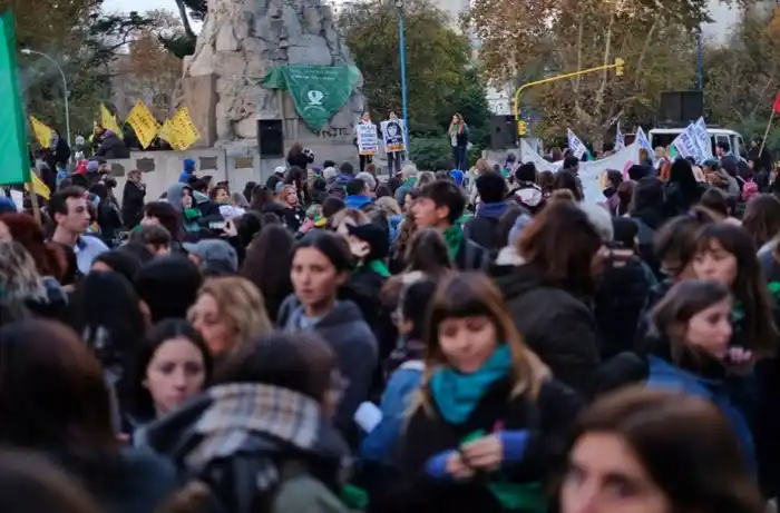 Por eso, esta vez, muchas de las manifestantes llevaban puesto el pañuelo verde, símbolo de la campaña nacional por el derecho al aborto legal, seguro y gratuito para que las mujeres no mueran más en estas intervenciones, cuya despenalización está siendo debatida actualmente en el Congreso Nacional. Incluso la base del emblemático monumento a San Martín, emplazado en la Avenida Luro y Mitre, fue cubierto con uno.