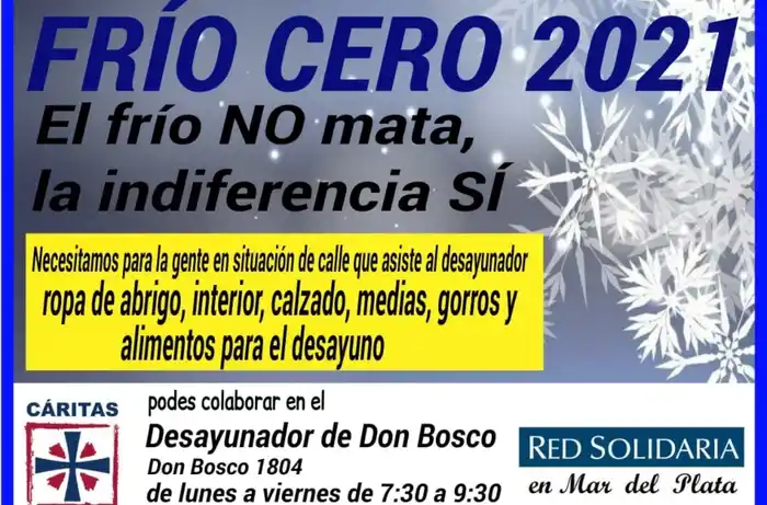El Desayunador de Don Bosco lanzó la campaña solidaria "El frio no mata, la indiferencia sí" para recolectar calzados, abrigo y mantas para personas en situación de calle ante la llegada del invierno a Mar del Plata.