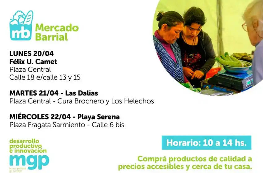 Desde este lunes, la Feria funcionará en el barrio Félix U. Camet, en la plaza central ubicada en calle 18 e/calle 13 y 15. Este martes se trasladará a Las Dalias, en Cura Brochero y Los Helechos y el miércoles 24 dejará el sectror norte del distrito para ir a Playa Serena, en Plaza Fragata Sarmiento -calle 6 bis.