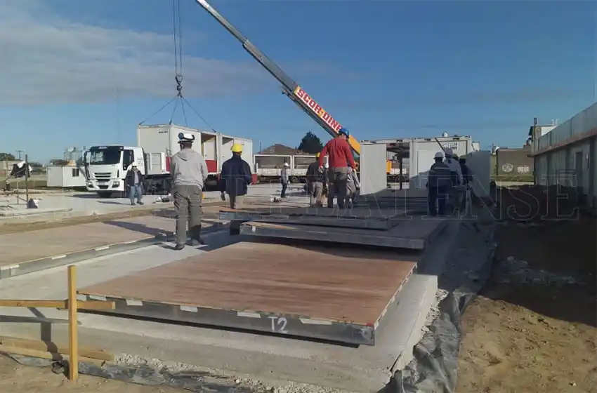 A su vez, el arquitecto explicó que "los módulos centrales ya están colocados y hay otros que conformarán el entrepiso técnico para ir conformando el lugar. Obviamente, después queda la tarea por desarrollar como son las instalaciones eléctricas, cubiertas, veredas por hacer. Se viene a buen ritmo, con jornales de 12 horas".