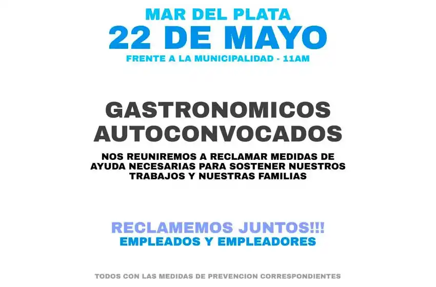 Además, remarcó que "en Mar del Plata, gastronómicos concentra de 10 a 15 mil trabajadores y más de mil locales", aunque aclaró que en la movilización habrá 300 comercios".