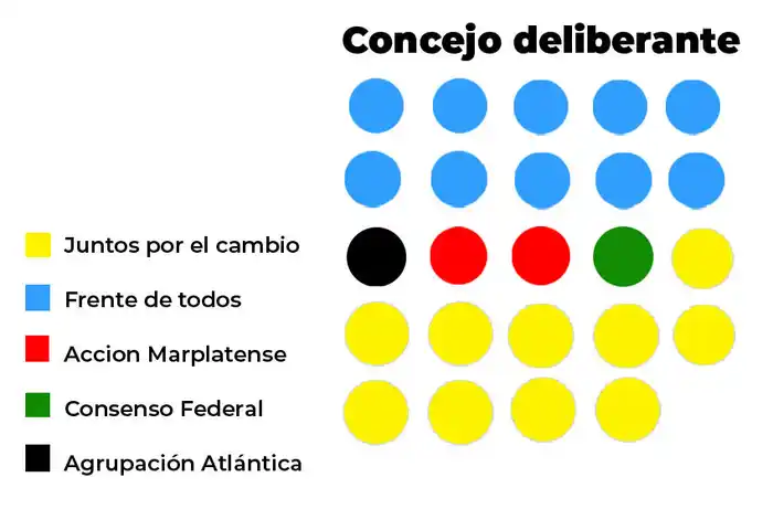 De esta manera, Juntos por el Cambio queda con 10 bancas, las mismas que el Frente de Todos, Acción Marplatense mantiene sus dos y mientras que Consenso Federal se queda con una (Mercedes Morro) al igual que Agrupación Atlántica (Mauricio Loria).