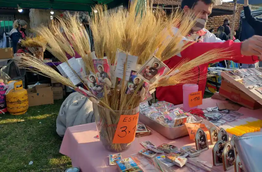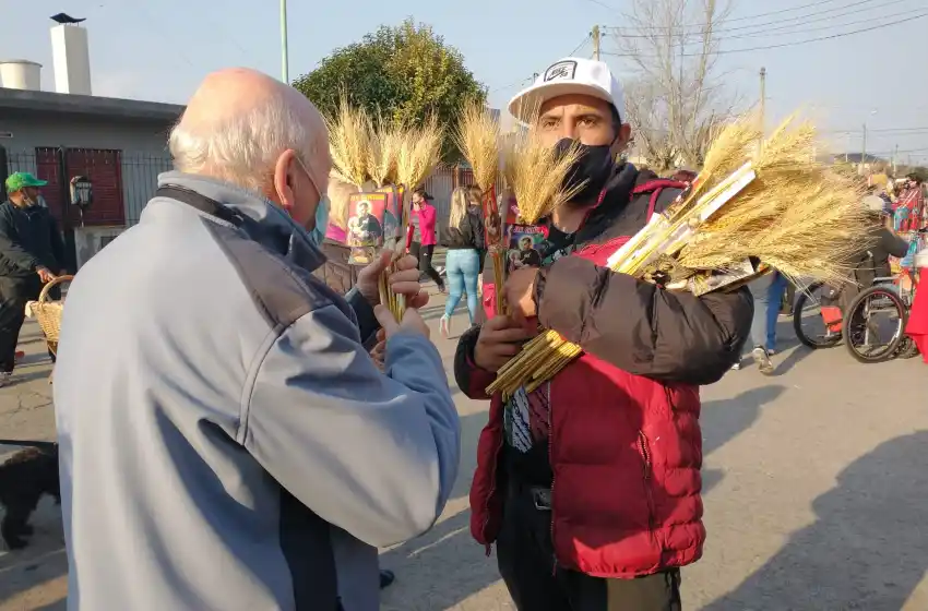 La imagen del patrono del pan y el trabajo inundo las calles de la ciudad. En tanto, los vendedores acompañaron la celebración ofreciendo estampitas y espigas a los peregrinos, que luego llevaron diáconos y sacerdotes para que las bendigan.