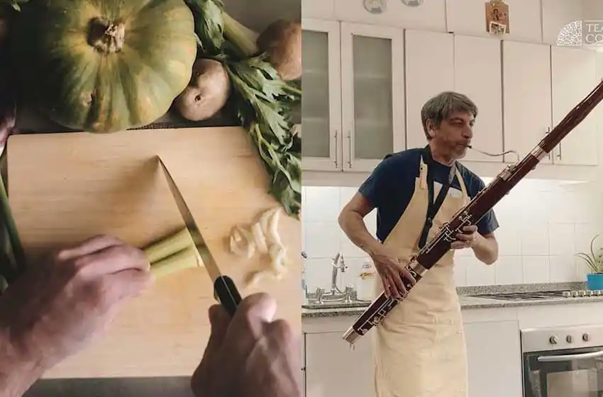 El músico da clases por Zoom, una herramienta que “hace cuatro meses, no sabía ni que existía”, y su pareja es fotógrafa. Aprovechando la virtualidad y las habilidades profesionales de su compañera, Ferreirós pensó cómo aprovechar su otra gran pasión, la cocina, e incorporarla a su vida como músico: “Más allá de los instrumentos tradicionales que toco en la orquesta, suelo prestar atención a los sonidos que me rodean, y paso mucho tiempo cocinando, porque disfruto de hacerlo como terapia, y me encanta comer”, dice.