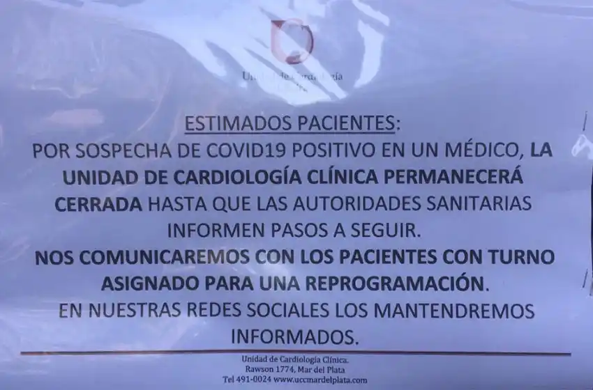 Tal como adelantó El Marplatense, la Unidad de Cardiología Clínica anunció este viernes que cerró sus puertas ante un "posible caso sospechoso de coronavirus" en uno de sus profesionales. El centro de salud está ubicado en Rawson 1774 y funciona desde el año 2009.