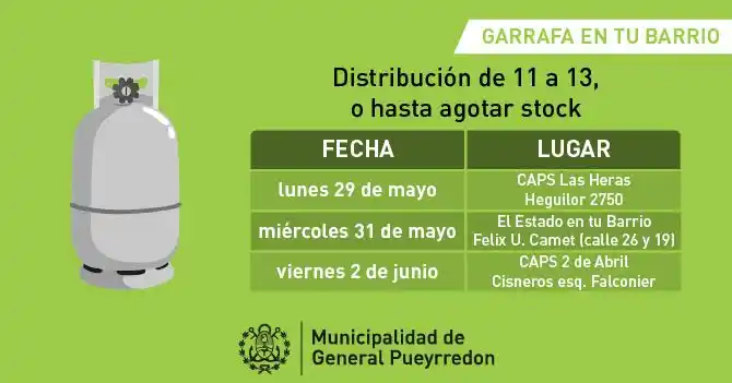 Continúa el cronograma de distribución de garrafas en los barrios. La próxima semana será el turno de Las Heras (lunes), y Felix U Camet y 2 de Abril (viernes). La unidad se comercializa a $ 135.