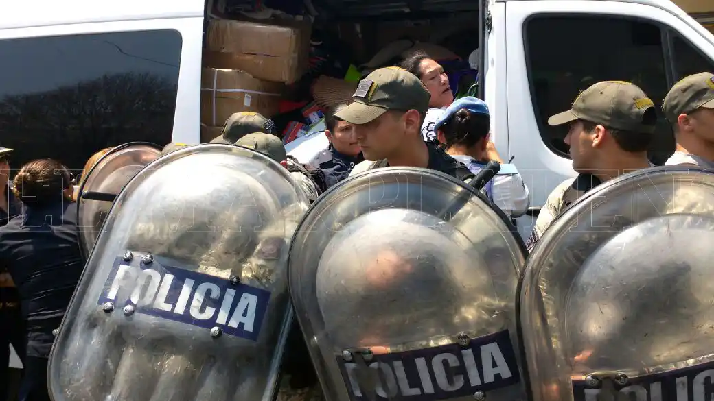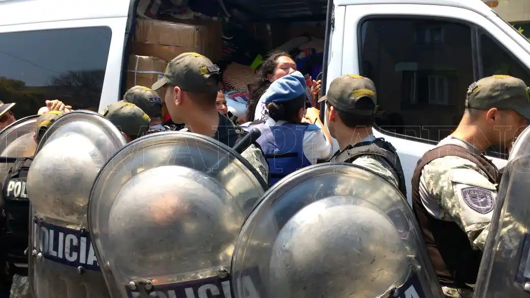 Los incidentes que ya se habían registrado a la mañana en el edificio ubicado en Belgrano entre España y Jujuy llegaron a su máxima tensión en horas del mediodía. En ese marco, personal municipal intentó bajar de sus vehículos los más de 200 bolsones llenos de mercadería que habían sido incautados, pero los puesteros se resistieron y protagonizaron una fuerte gresca.