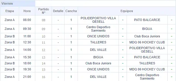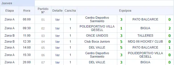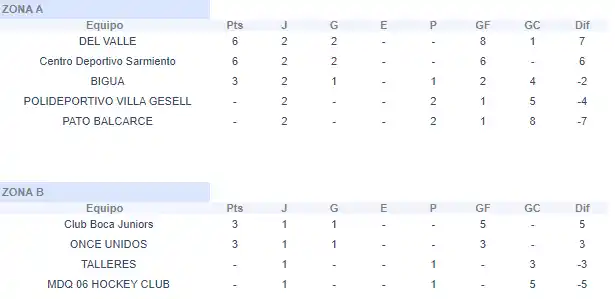 En la otra zona, Del Valle de Necochea y Biguá ganaron sus primeros partidos de la jornada. Las necochenses 5-1 ante Pato de Balcarce con goles de Soledad Ayesa (2), Ruth Allamanla, Lara Vitale y Verónica Serrano mientras que el descuento en el final fue para Analía Urdín. Las de Parque Camet, en tanto vencieron 2-1 a Polideportivo Villa Gesell gracias a las anotaciones de Delfina Blanco y Sofía Erazarret, mientras que Micaela Fleitas anotó para las gesellinas.