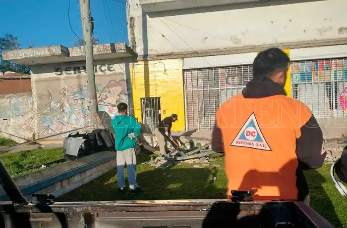 "A las cinco y media de la mañana escucho un ruido fuerte y salgo a ver qué era. Se había caído el volado de la farmacia y justo tenía mi auto ahí. Dañó la trompa, pero gracias a Dios no fue ninguna persona. Justo en esta esquina está la parada de colectivo y mucha gente va temprano a trabajar", indicó Alexis, dueño del auto e inquilino de la parte superior de la construcción.
