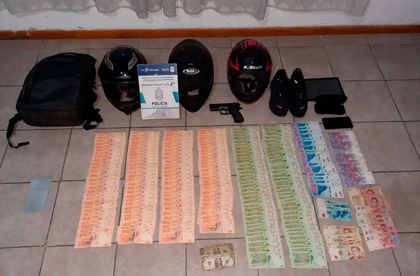 En el marco del operativo, personal de la comisaría segunda secuestró dinero, una réplica de un arma de fuego, una moto marca Gilera, tres cascos, un par de zapatillas, un celular marca Samsung A50, una tablet, lentes de sol, una mochila negra y 28 tarjetas de presentación.
