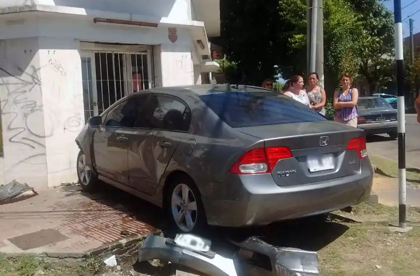 Producto del impacto, el rodado que recibió la embestida del auto gris que era conducido por la mujer terminó apostado sobre la vereda de un local que comercializa artículos de limpieza, según indicaron fuentes que presenciaron el siniestro vial.
