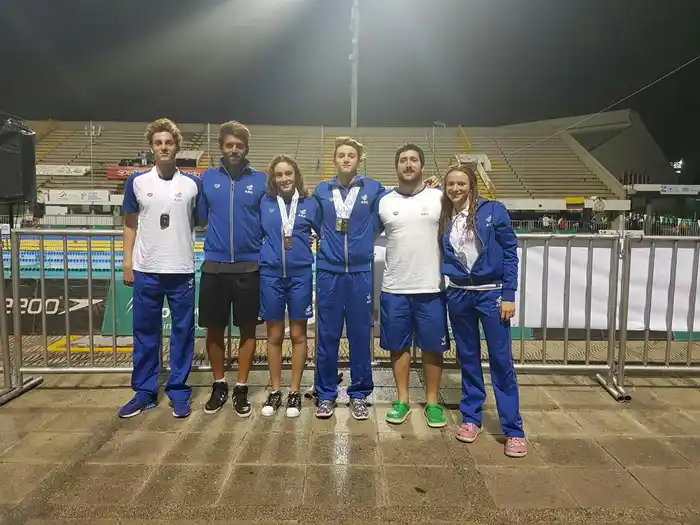 En cuanto a las competencias por equipos, las postas 4×100 combinadas fueron las grandes figuras de la jornada porque las cuartetas argentinas tanto en damas como en caballeros obtuvieron la medalla de plata con un marplatense en cada una de sus formaciones.