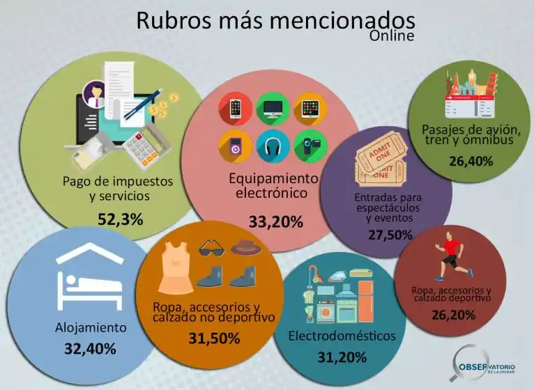 En tanto, los rubros sí que coinciden con la encuesta a nivel nacional. “El primero de consumo en Internet es el de pago de impuestos y servicios 52%, seguido de equipamiento electrónico, turismo (alojamiento, pasajes, paquetes) espectáculos e indumentaria”, dijo el titular de la CACE regional. Además, el nivel de satisfacción alcanza el 83%.