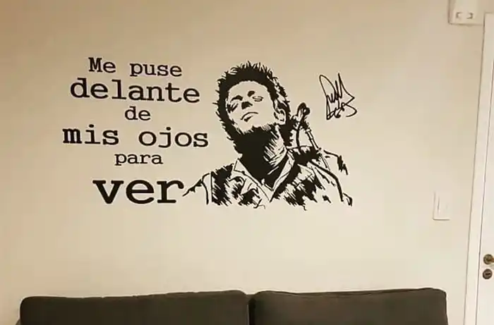 "Lo bueno de lo que hago es que resulta infinito. En lo único que me encierro es en la técnica y en lo monocromático, que vendría a ser mi sello. En cuanto al contenido, es libre. Me han llegado a pedir que dibuje a (Hugo) Moyano o una escena de la película Casablanca. Pero de todas maneras, tengo algunos hechos porque son cantantes que me gustan a mí también", aseguró y continuó: "Ahora estoy haciendo algo más estandarizado con artistas y frases. Es como la búsqueda de un producto con un sello propio y que salga con frecuencia. Hay muchas personas a las que les gusta Sabina y uno publicita eso, lo que te puede dar más continuidad, a la espera de laburos más grandes, que son más redituables".