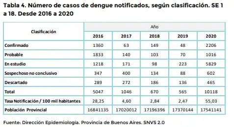Los fallecidos bonaerenses por la enfermedad son cuatro en los distritos de Avellaneda, San Martín, Almirante Brown y Berisso. “La letalidad en la provincia de Buenos Aires es de 0,20%”, indica el informe.