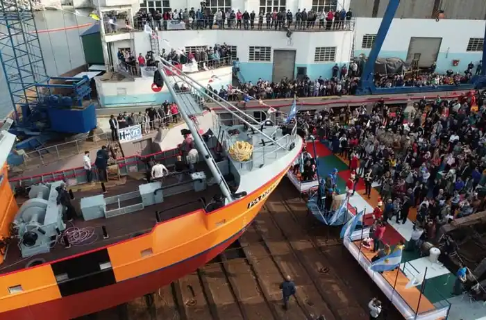 El buque pesquero "Padrino" tuvo su bautismo y botadura esta tarde, en el puerto de Mar del Plata. Esta se trata de la segunda botadura en lo que va del año y de la número 131 en la historia del Astillero Contessi.