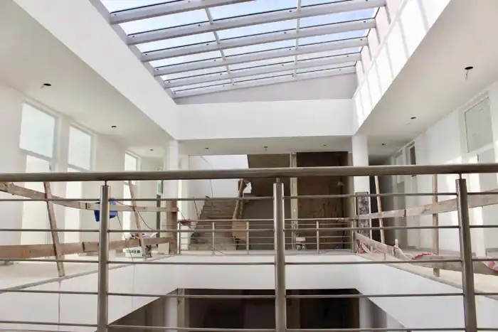 La obra total realizada consta de una superficie cubierta de 1.100 m2 y una superficie semicubierta de aproximadamente 95m2, dispuestos en dos plantas. Además, se recuperó la fachada principal con la carpintería original sobre las calles Salta y Colón.