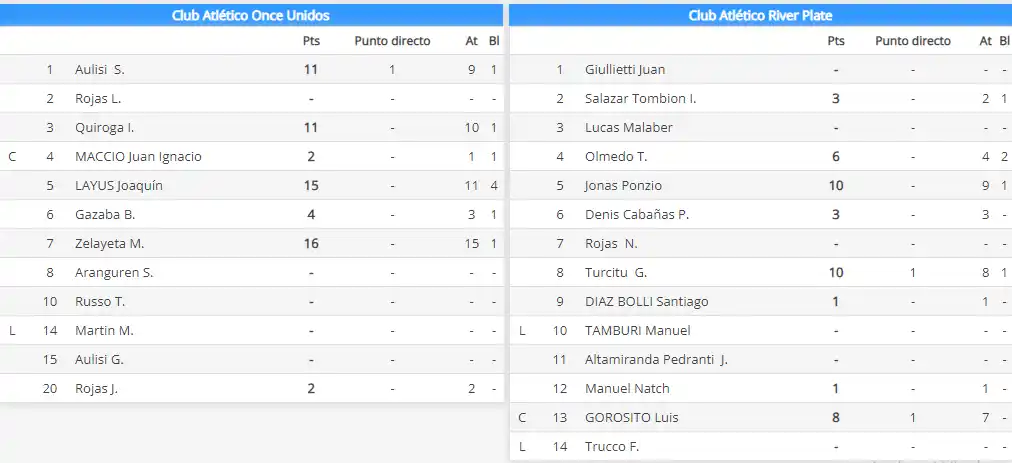 Durante la primera parte del partido, fueron punto a punto alternando momentos buenos para uno y para otro equipo. Promediando el parcial, el “millonario” empezó a comendar el marcador logrando un par de puntos de ventaja, pero se recuperó Once Unidos para llegar a los puntos decisivos con un empate. Con Gazaba como líder anotador y los bloqueos de Layus, una especialidad de la casa, y Zelayeta obligaron al minuto pedido por Rico. River tampoco acertaba porque con un remate ancho de Zalazar le dio el set point a Once. Mauro Zelayeta lo cerró con un manos y afuera para el 25-21.