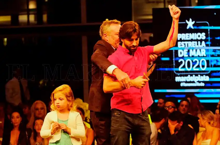 “Es teatro, chicos. Es un cuchillo trucado, por supuesto, que parecía que sacaba sangre. El reclamo fue que salió en un portal de Internet la noticia luego de que me confirman telefónicamente una persona anónima que había una orden del municipio, desde muy arriba, que les pedía a los jurado que por favor no nominen a Séptimo Fuego porque era los que venían a los Estrella de Mar a hacer quilombo, los que desplegamos la bandera y pedimos por la liberación de Milagro Sala ni bien estuvo presa”, explicó.