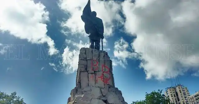 El Emsur limpió el monumento a San Martín, pintado por hinchas de Boca