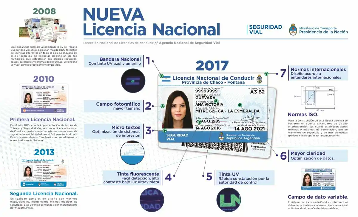 Según indicaron desde el Gobierno, la nueva licencia mejora todas las medidas de seguridad para evitar falsificaciones y podrá utilizarse en más de 100 países del extranjero. Asimismo se están elevando las exigencias para obtenerla y se está expandiendo su cobertura a todo el territorio argentino.
