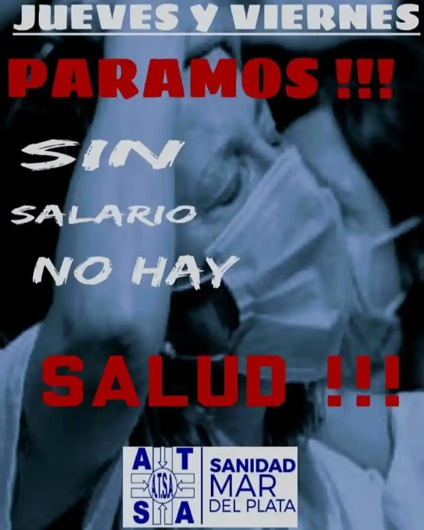 En tanto, la Confederación General del Trabajo de la República Argentina (CGT) local confirmó que la Asociación de Trabajadores de la Salud (ATSA) Mar del Plata se sumará a las acciones, bajo la consigna "Sin salario no hay salud".