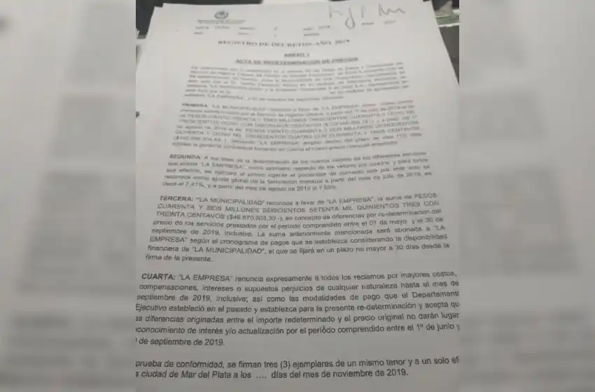 En la documentación oficial, a la que tuvo acceso este medio, se refleja que la 9 de Julio solicitó una redeterminación de precios en junio de 2019, debido al incremento de los costos.