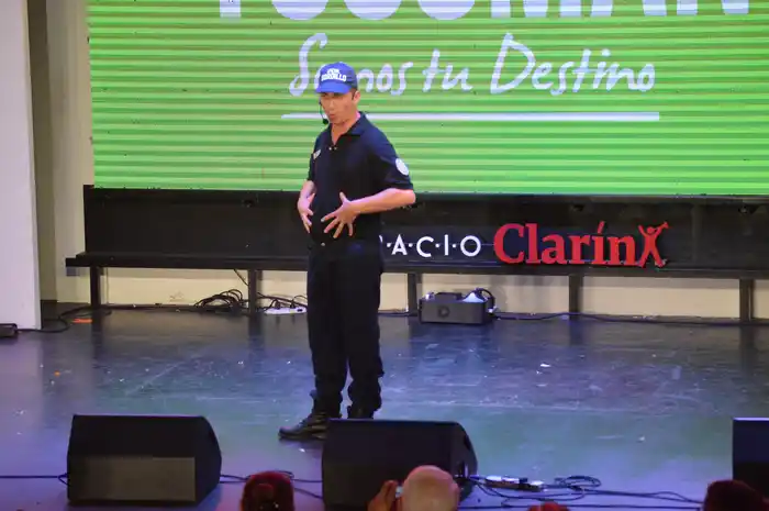 Durante su show en Espacio Clarín, el Oficial Gordillo contó las anécdotas más populares de su repertorio que incluyeron a la tía Pocha, la olla Essen y el sanguche de milanesa. Además incorporó monólogos de su espectáculo "Choriando a lo grande".