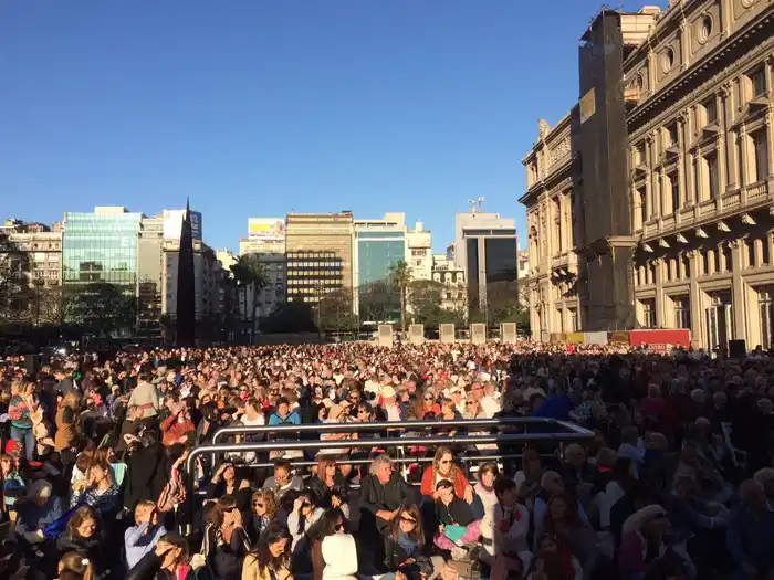 Las 1.500 sillas fueron pocas para la cantidad de gente que, en familia, mate y facturas en mano, disfrutó de una tarde de ópera bajo el sol de Buenos Aires, a metros de la avenida 9 de Julio y con el imponente Colón como marco.