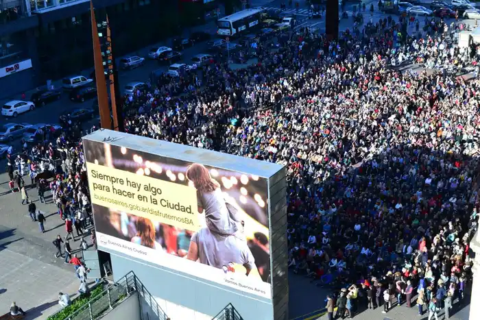 Las autoridades colocaron una pantalla gigante de la plaza del teatro, que se encuentra ubicado en Viamonte y Cerrito, y la entrada fue libre y gratuita.