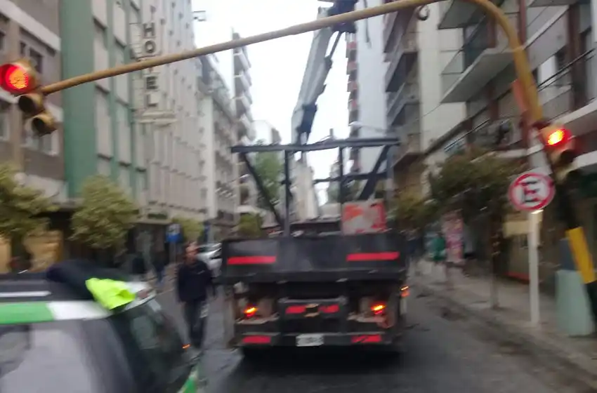 El hecho ocurrió en horas de la tarde en Belgrano y Córdoba. Personal de Transporte y Tránsito fue alertado del estado del semáforo, que colgaba sobre la calle. Al lugar acudieron móviles y una grúa, que facilitaron que se retirara la unidad. Por las tareas realizadas, el tránsito fue cortado durante algunos momentos.