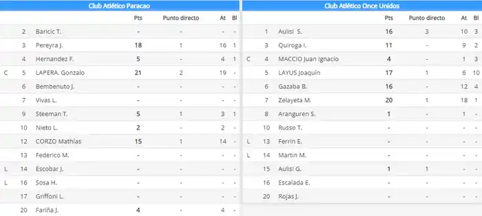 Mauro Zelayeta, como siempre, fue el máximo artillero marcando 20 puntos, pero el trabajo de Joaquín Layús lo erigió como la figura del juego por sus 17 unidades, pero sobre todo por sus 10 bloqueos que le dieron vida al equipo en momentos claves. Santiago Aulisi y Bautista Gazaba, sumaron 16 cada uno.