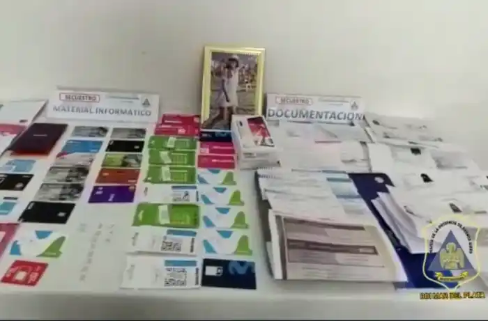 En el operativo se incautaron: fotocopias de varios DNI, tarjetas de CHIP de diferentes empresas prestatarias, 2 teléfonos celulares, tarjetas de crédito y debito de diferentes Bancos, carta documento, portarretrato fotografía recortada de una revista de María Eugenia Vidal.