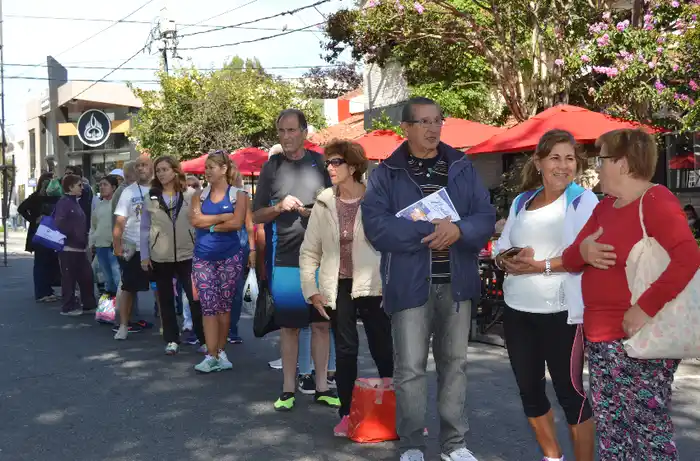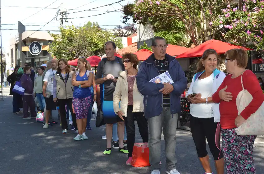 La ansiedad convirtió a las jubiladas y amigas en las primeras de una larga fila que se extendió por dos cuadras alrededor del emblemático espacio ubicado en Güemes entre San Lorenzo y Roca. "Todos nos han atendido maravillosamente bien, siempre vamos a Espacio Clarín y nos atienden muy bien también. Hay muy buen clima y está todo muy limpio", aseguró con emoción Clara.